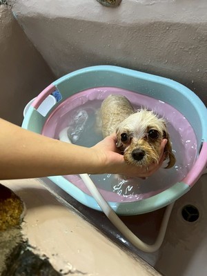 温泉でセルフシャンプーのあとは トリマーのドライコース